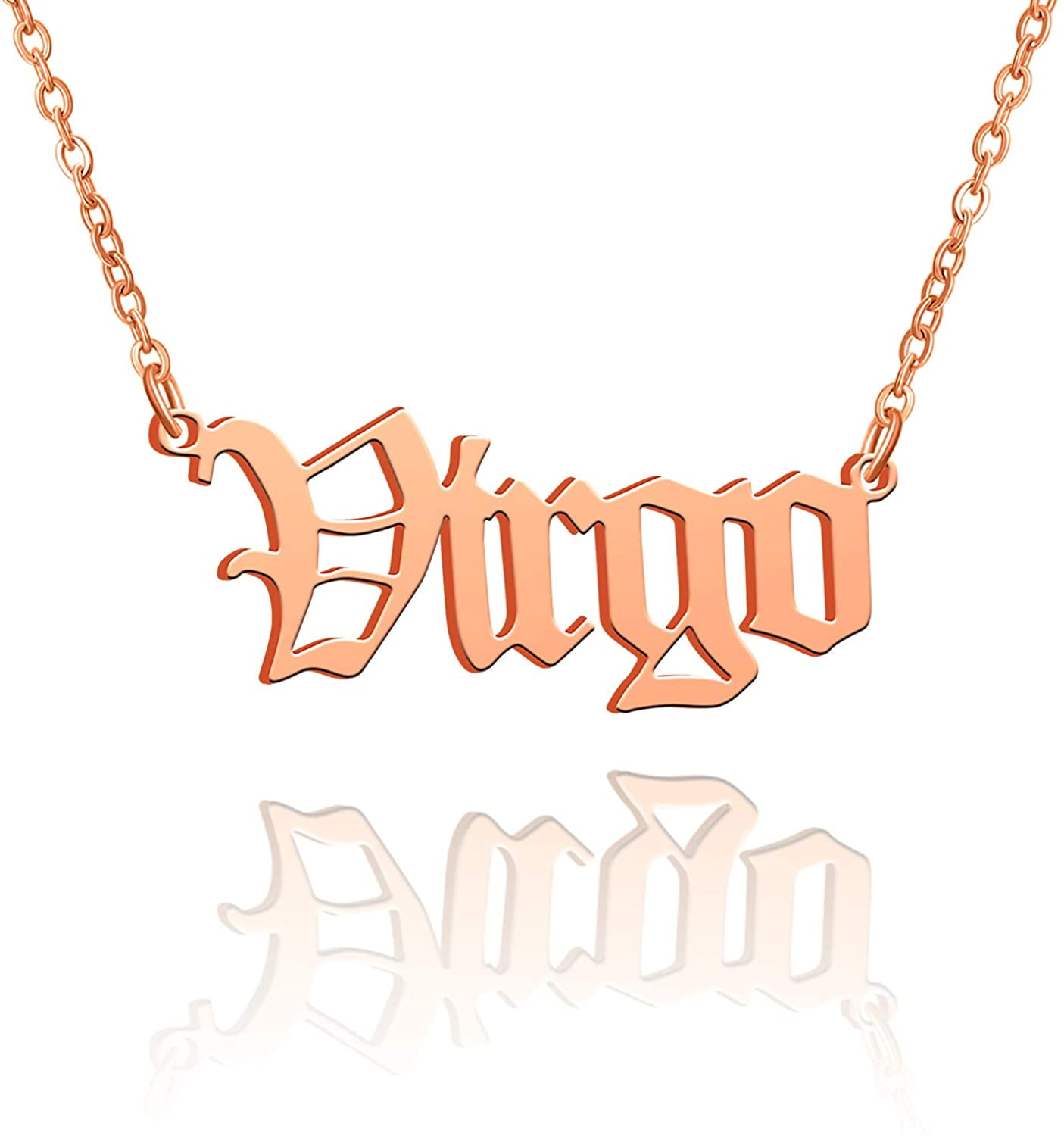 Retro 12 Zodiac Old English Letter Necklace for Women Horoscope Astrology Necklace 14K Gold Plated Mothers Day Birthday Gift Rose Virgo C